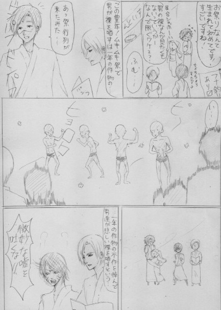 続きで漫画。半裸の男が大量に出てきますので、大丈夫だよ、という方のみどうぞ。