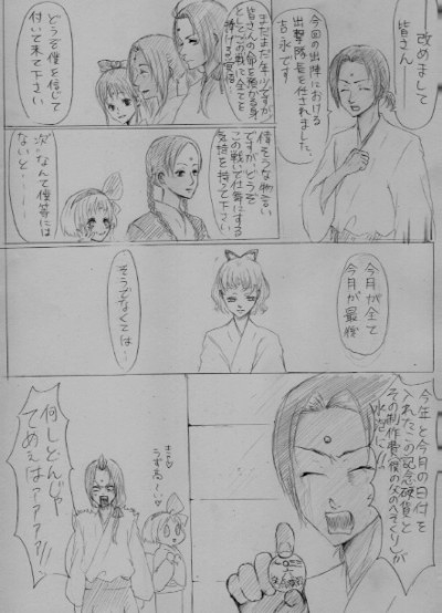 波に乗り遅れた話題でもう一席。もうすぐ俺屍10周年なんですね。すっかり忘れてました(最低)。せめて一枚くらい絵を描いてお祝いしたいぞ・・・!新規ユーザーが少なくて俺屍界(?)ちょっと元気が無い、とどこかで拝読したのですが、発売十周年をお祝いする、という事自体に昔からのファンの底力と愛情が感じられて、俺屍まだまだ大丈夫!と勝手に思いました。私自身、昔からのファンを名乗る為にも、去年おととしとスルーし続けたリベンジをする為にも、今年こそ!今年こそ!