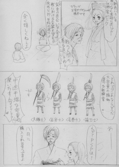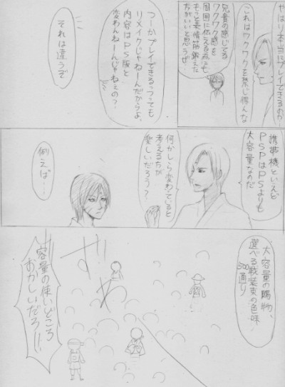 給料が入ったら真っ先に買おうと思ってたPSPでしたが、生活に必要なものを優先して買ってたら、どんどん後回しになってました。買おうとは思ってるんですよ。ほんとに。妹に話したら、「PSであんだけやったのに、わざわざPSP買ってやるの?」と言われましたが、やりますよ!というかBASARAをしばらくプレイしたらその後は恐らく俺屍専用機です。