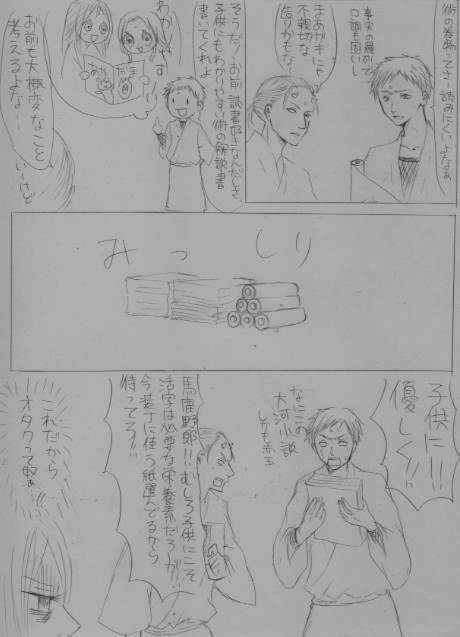 ほぼ一ヶ月ぶりの漫画・・・前描いたのは夏休み中でしたので、俺屍漫画を描いたの自体は二ヶ月ぶりです。アップしてから気が付きましたがお紺さんのかんざしを片方書き忘れてました・・・駄目人間・・・